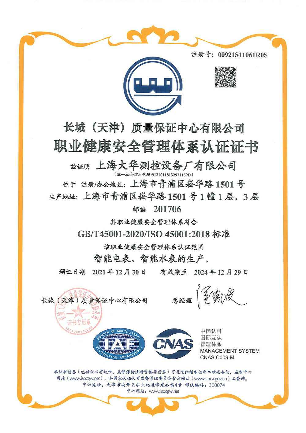 2020年 UCCS测量管理体系认证证书;